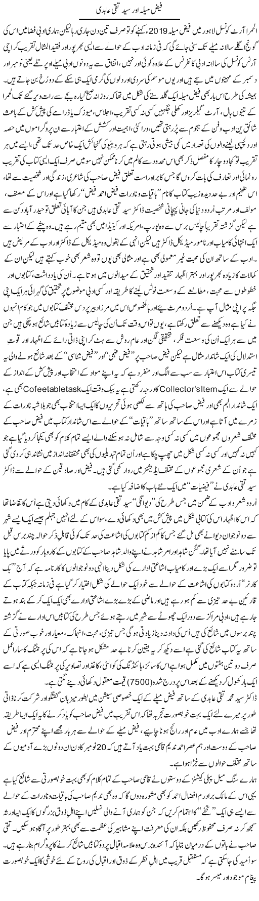 اردو کالمزAmjad Islam Amjad فیض میلہ اور سید تقی عابدی بواسطة Niaz Shakir - Thursday, 21 November, 2019 0 961 FacebookTwitterPinterestWhatsApp